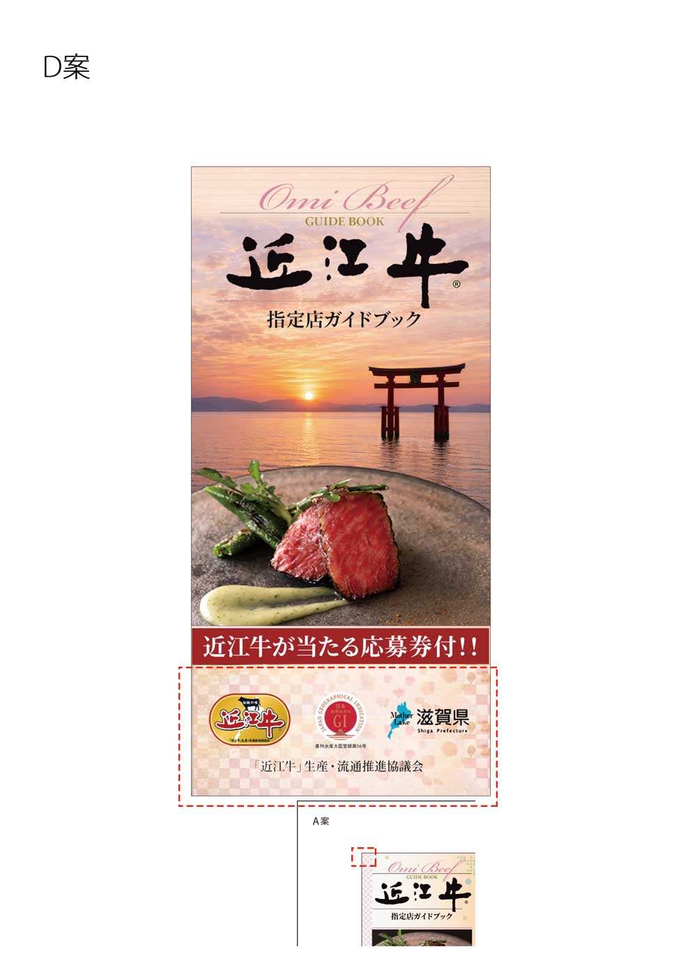 ・デザイン下部の格子柄がうまく表現できていなので、A案の左に配置している格子柄のイメージで色・バランス等を本デザインに合わせて補正して配置お願いします。